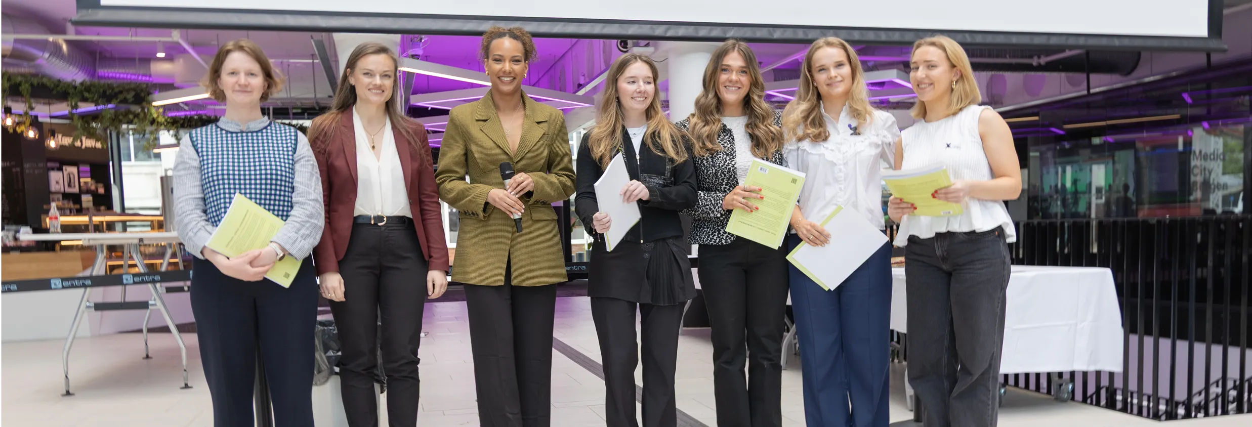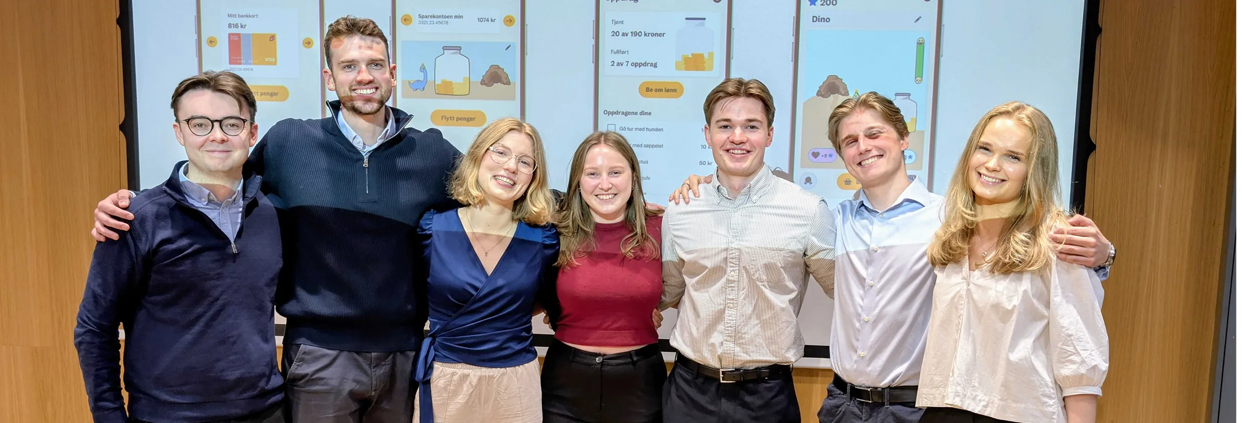 Studentteamet hos Sparebanken Norge sommeren 2025 under presentasjonen av den nye Barnebanken.